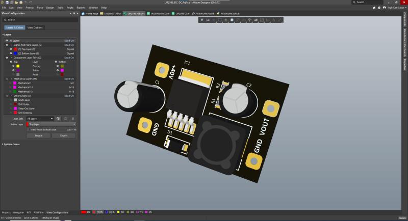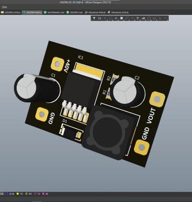 Giriş – çıkış filtrelemeleri, akım yolları, komponent yerleşimleri ve 3D modellemeleriyle tamamen sıfırdan oluşturduğum kompakt ve verimli bir DC-DC dönüştürücü tasarımı oldu.