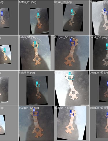 Elimde hatalı bir parça bulunmadığından Gemini AI ile tek bir hatalı parça görseli oluşturdum. Ürettiğim veri artırma yöntemleriyle bir dataset oluşturdum. Ardından YOLOv8 ile modeli eğittim.