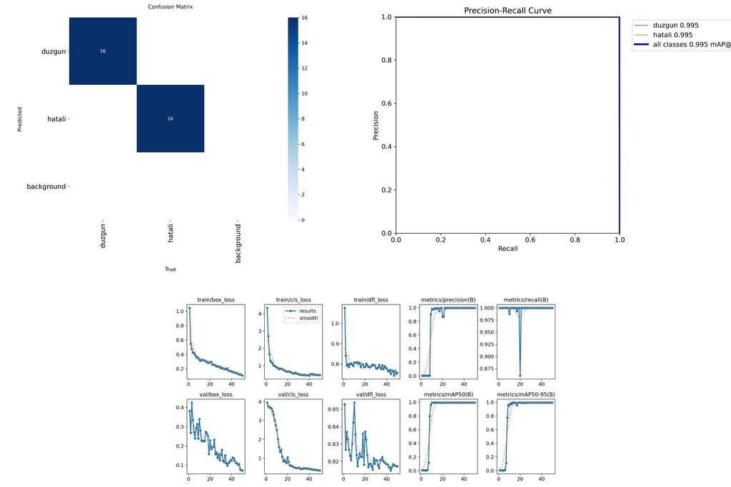 Model, hem “düzgün" hem de “hatalı" sınıflarında %99–100 doğruluk seviyesine ulaştı.