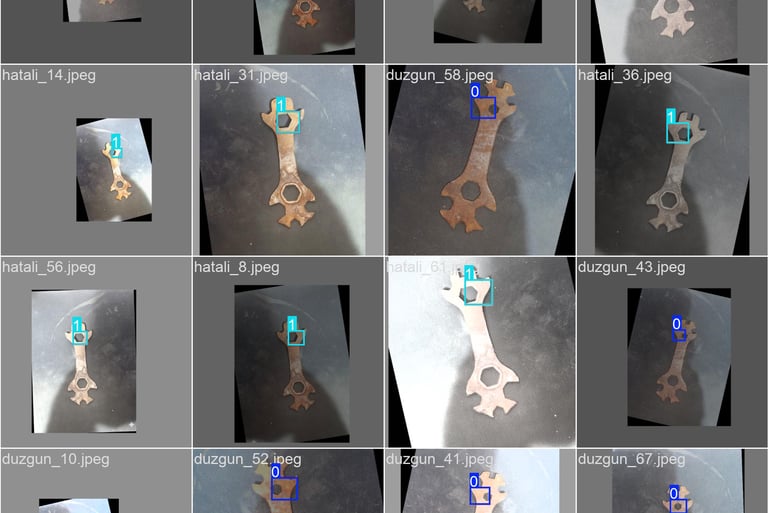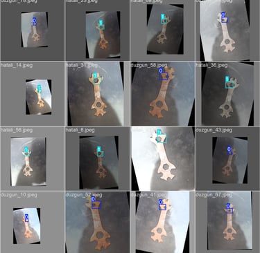 Elimde hatalı bir parça bulunmadığından Gemini AI ile tek bir hatalı parça görseli oluşturdum. Ürettiğim veri artırma yöntemleriyle bir dataset oluşturdum. Ardından YOLOv8 ile modeli eğittim.