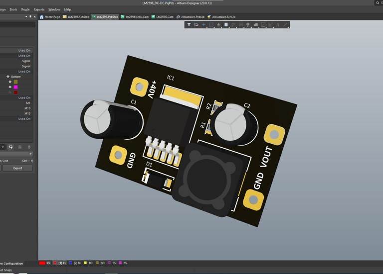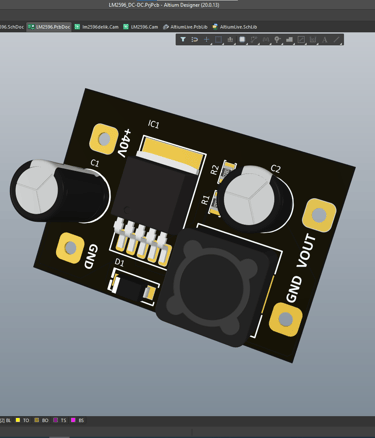 Bugün Altium Designer üzerinde tasarladığım LM2596 tabanlı buck converter kartımı paylaşmak istiyorum.